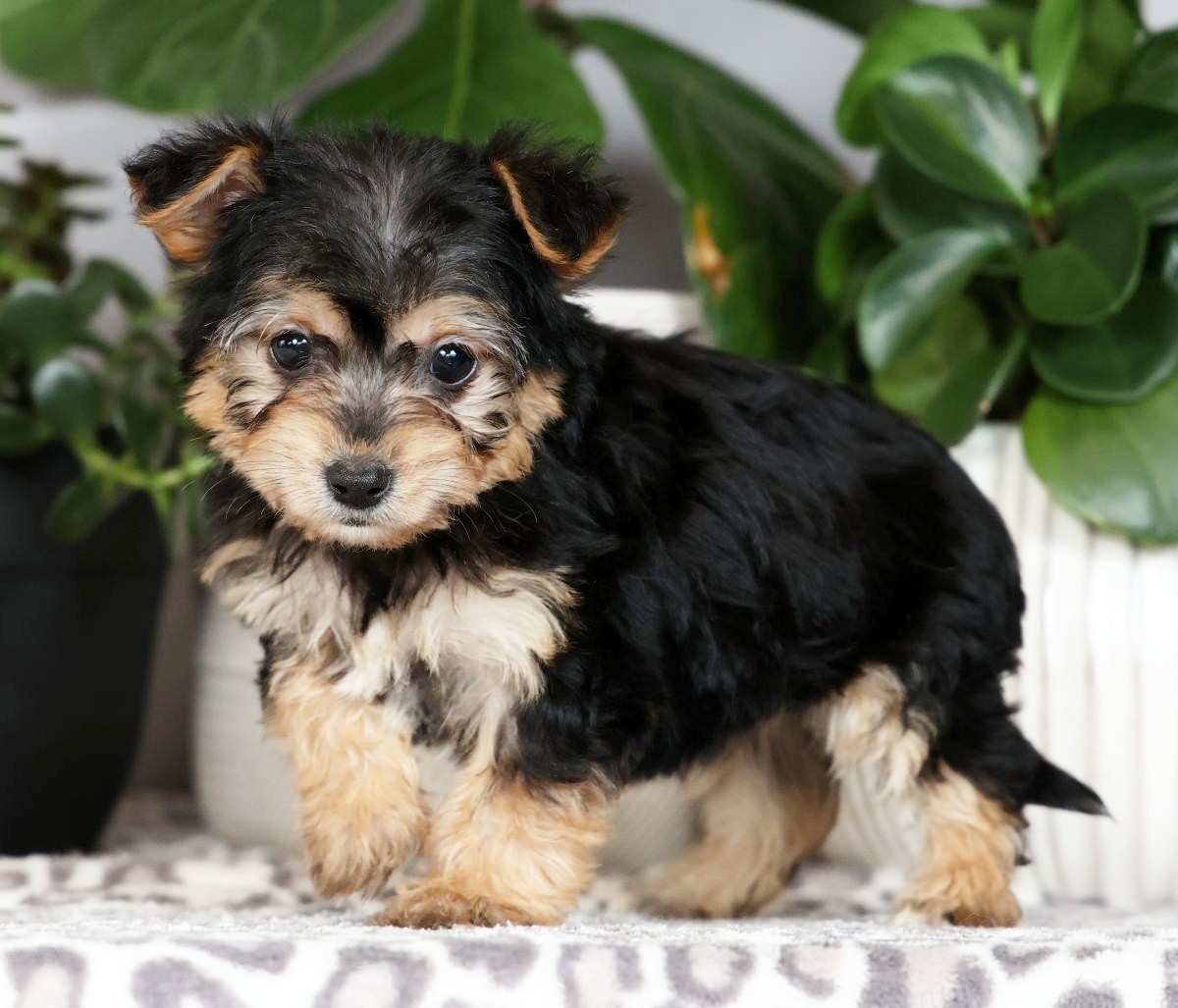 This charming, inquisitive, and delightful breed is a mix between a Yorkshire Terrier and a Bichon Frise. The Yorkie-Chon originated in the United States about 20 years ago and became more well known about ten years ago. This affectionate, amusing, comical, and devoted breed loves people and attention, and loves to be the center of that attention. This breed is very sociable but early socialization is imperative or they can exhibit a nervous disposition when older. They have a tender and sensitive temperament, but can also suffer from separation anxiety, and it would be important to have lots of toys for them when left alone. Yorkie-Chons are great for apartment living and are resilient in any living arrangement, and are also good for families with children. Though they are energetic and lively, they do not require a lot of exercise, maybe 30 minutes a day, because they expend lots of calories simply by being energetic. The Yorkie-Chon has a thick and soft coat which does require routine brushing to avoid matting and to alleviate excess hair on the floor. It is vitally important to maintain the fur behind their ears to also avoid matting. This breed’s coat does not hold onto dirt or debris which aids in their low grooming requirements. The Yorkie-Chon does need to be bathed 1x/month and groomed only twice a year. This breed’s coat comes in many colors from white to black, and with many variations of shades in between. They do need to have their nails trimmed every month as well as their teeth brushed daily. It is important that the Yorkie-Chon have their ears cleaned frequently to prevent any infections from developing. The breed is typically 9-12 inches tall, usually weighs 6-8 pounds, and commonly has a lifespan of 10-12 years.