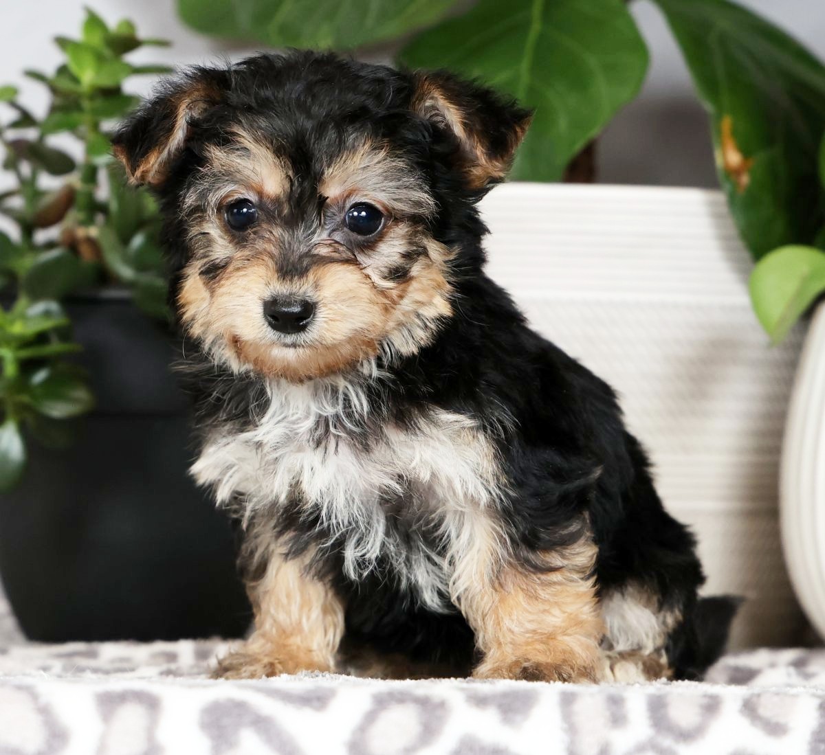 This charming, inquisitive, and delightful breed is a mix between a Yorkshire Terrier and a Bichon Frise. The Yorkie-Chon originated in the United States about 20 years ago and became more well known about ten years ago. This affectionate, amusing, comical, and devoted breed loves people and attention, and loves to be the center of that attention. This breed is very sociable but early socialization is imperative or they can exhibit a nervous disposition when older. They have a tender and sensitive temperament, but can also suffer from separation anxiety, and it would be important to have lots of toys for them when left alone. Yorkie-Chons are great for apartment living and are resilient in any living arrangement, and are also good for families with children. Though they are energetic and lively, they do not require a lot of exercise, maybe 30 minutes a day, because they expend lots of calories simply by being energetic. The Yorkie-Chon has a thick and soft coat which does require routine brushing to avoid matting and to alleviate excess hair on the floor. It is vitally important to maintain the fur behind their ears to also avoid matting. This breed’s coat does not hold onto dirt or debris which aids in their low grooming requirements. The Yorkie-Chon does need to be bathed 1x/month and groomed only twice a year. This breed’s coat comes in many colors from white to black, and with many variations of shades in between. They do need to have their nails trimmed every month as well as their teeth brushed daily. It is important that the Yorkie-Chon have their ears cleaned frequently to prevent any infections from developing. The breed is typically 9-12 inches tall, usually weighs 6-8 pounds, and commonly has a lifespan of 10-12 years.